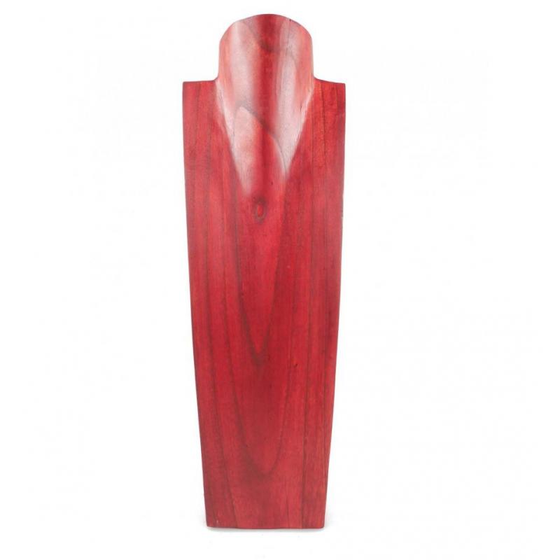 Déclassé - Présentoir spécial colliers longs 50cm buste en bois massif rouge