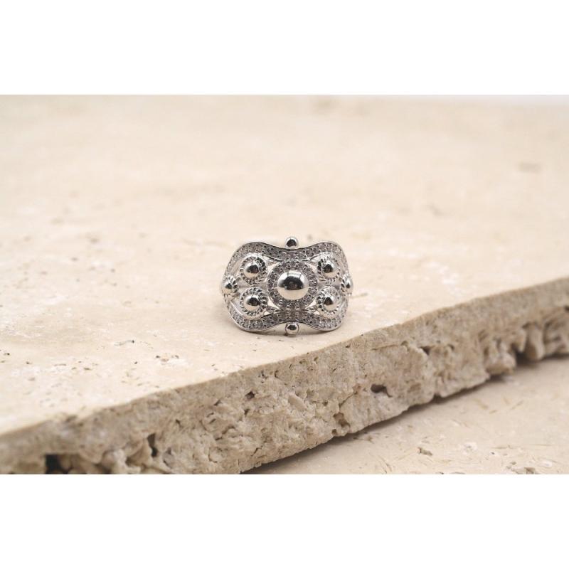 La bague Boulonnaise est composée de 9 demi-sphères de tailles différentes, 5 grandes et 4 petites représentant les 9 mois de grossesse précédent la naissance de l’enfant espéré.