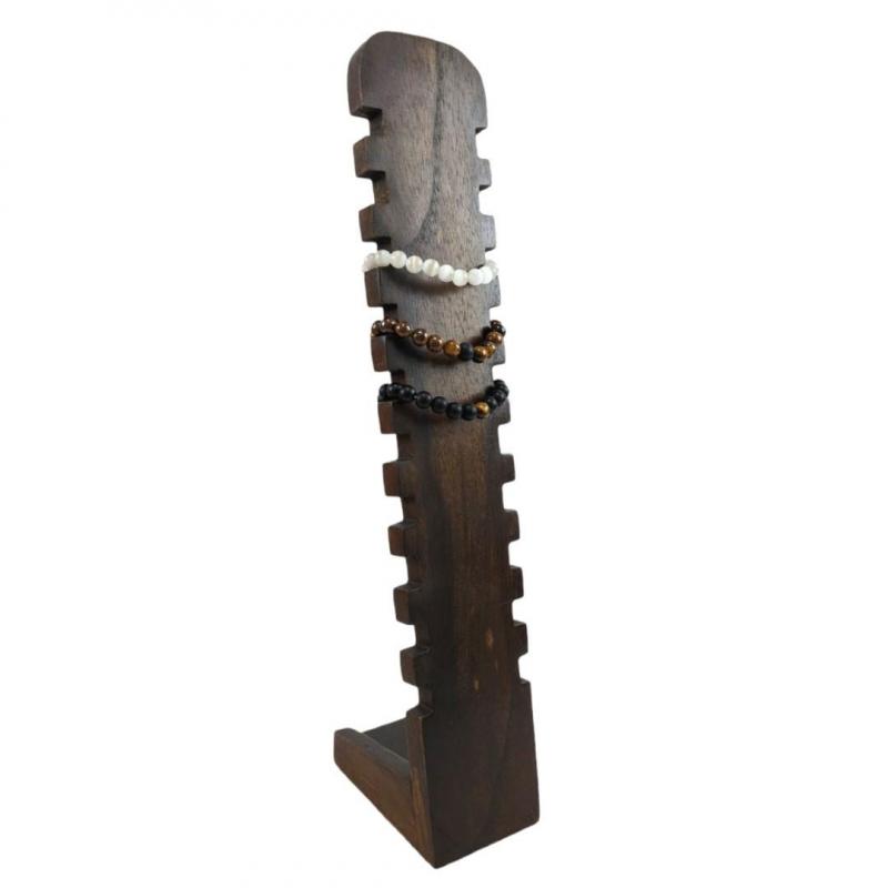 Présentoir à Bracelets cranté 40cm en bois massif | Finition "Chocolat"