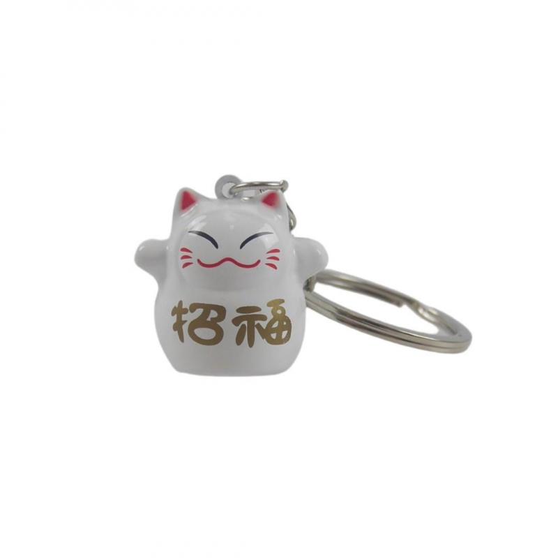 Porte-clé Maneki Neko Japonais Blanc à grelot
