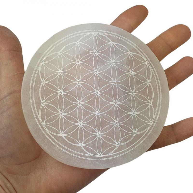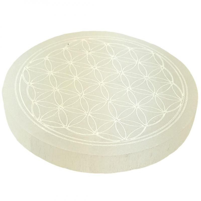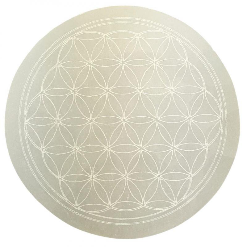 Disque Fleur de Vie en Sélénite ø10cm - Plaque de rechargement