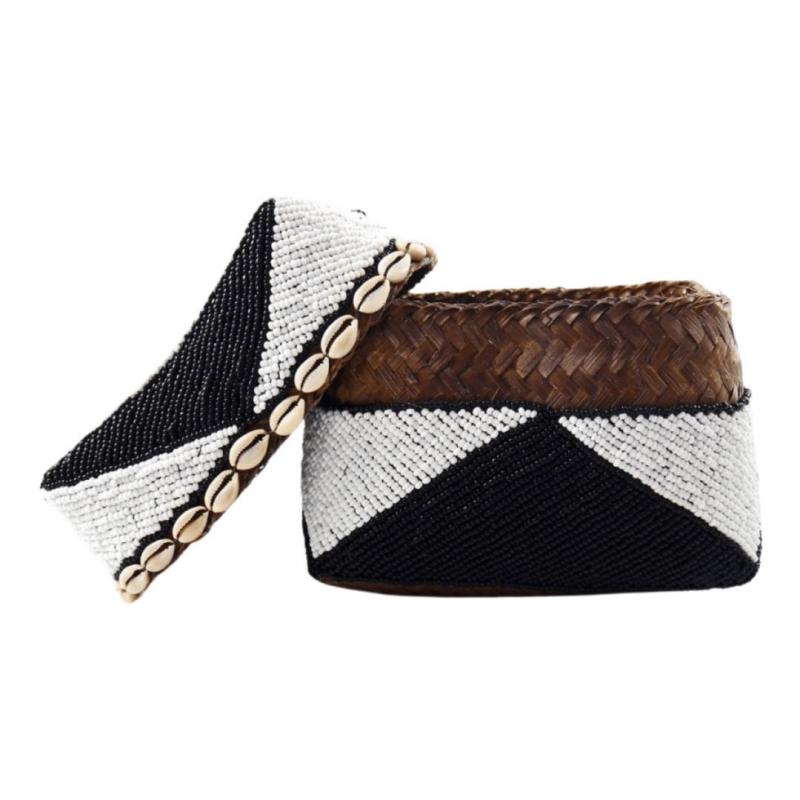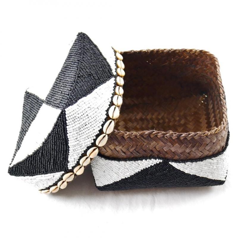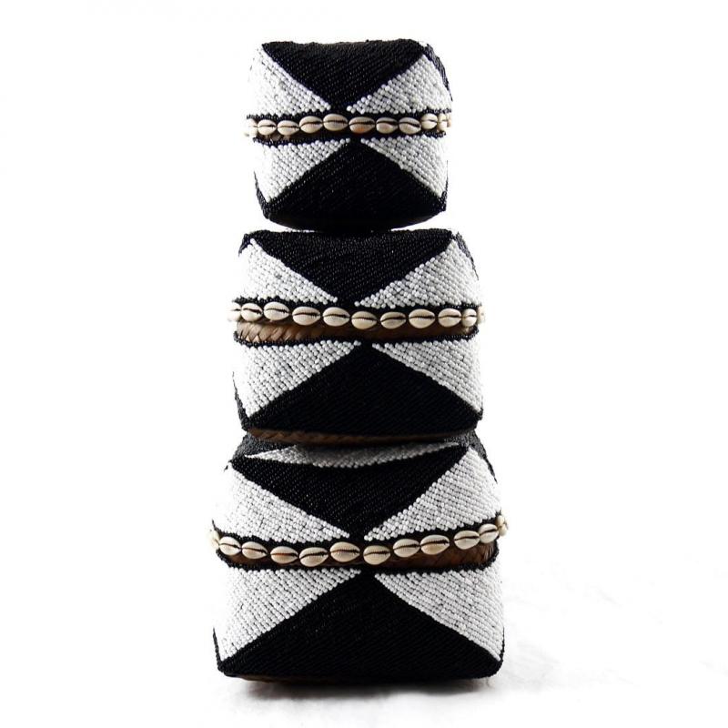 Set de 3 Boîtes à offrandes de Bali en bambou, coquillages et perles