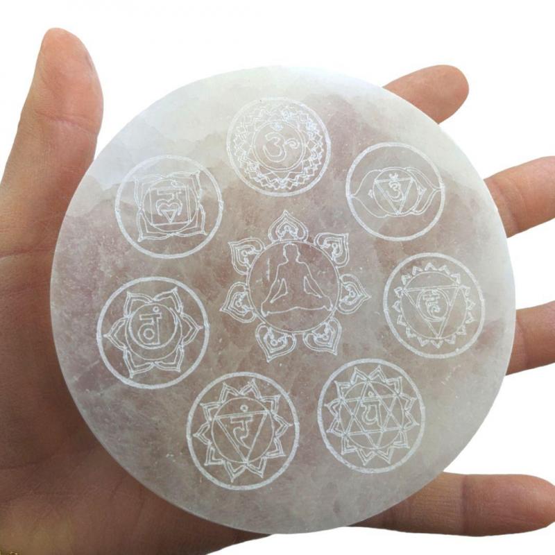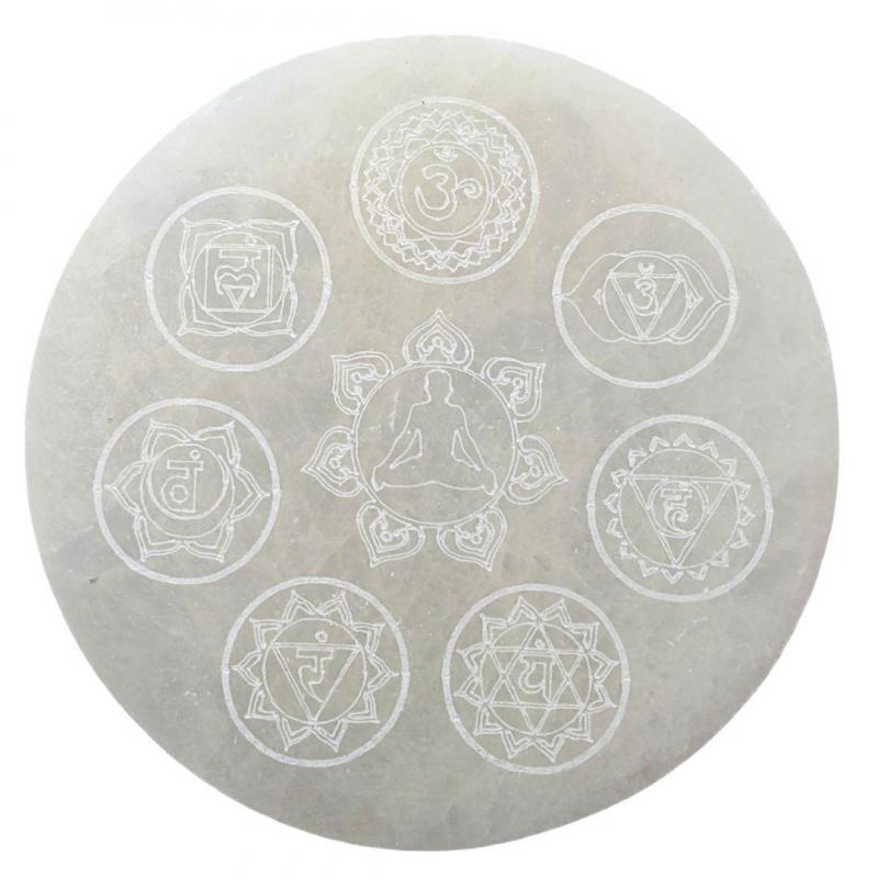 Disque 7 Chakras en Sélénite ø10cm - Plaque de rechargement