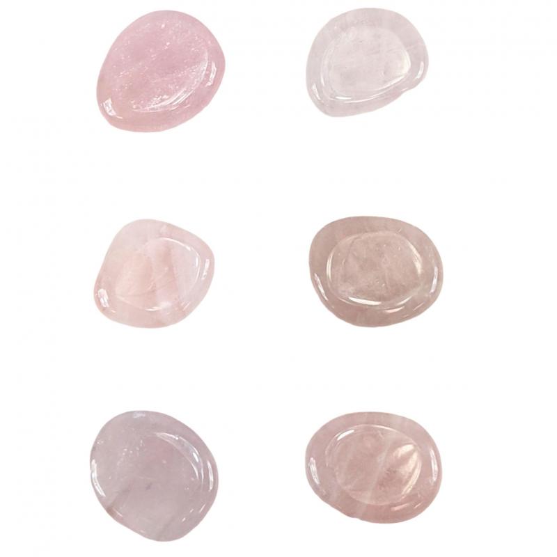 Cette pierre plate polie est en véritable Quartz rose de Madagascar (qualité A). Portez-la dans votre poche quotidiennement et l'énergie de la pierre améliorera votre humeur globale ! Plus d'informations