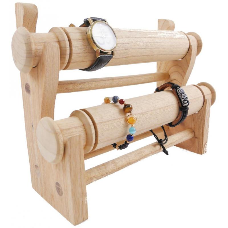 Présentoir à bracelets et montres 2 joncs en bois | Finition Bois brut naturel