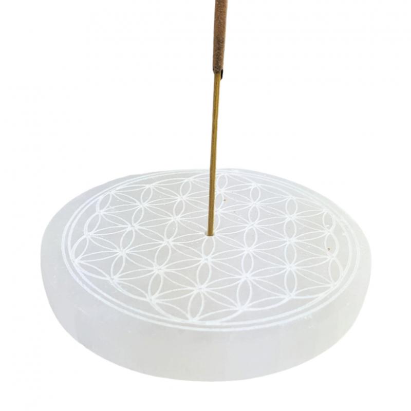 Porte-encens Fleur de Vie en Sélénite - Disque ø10cm