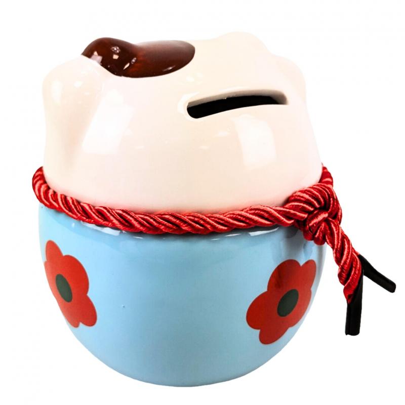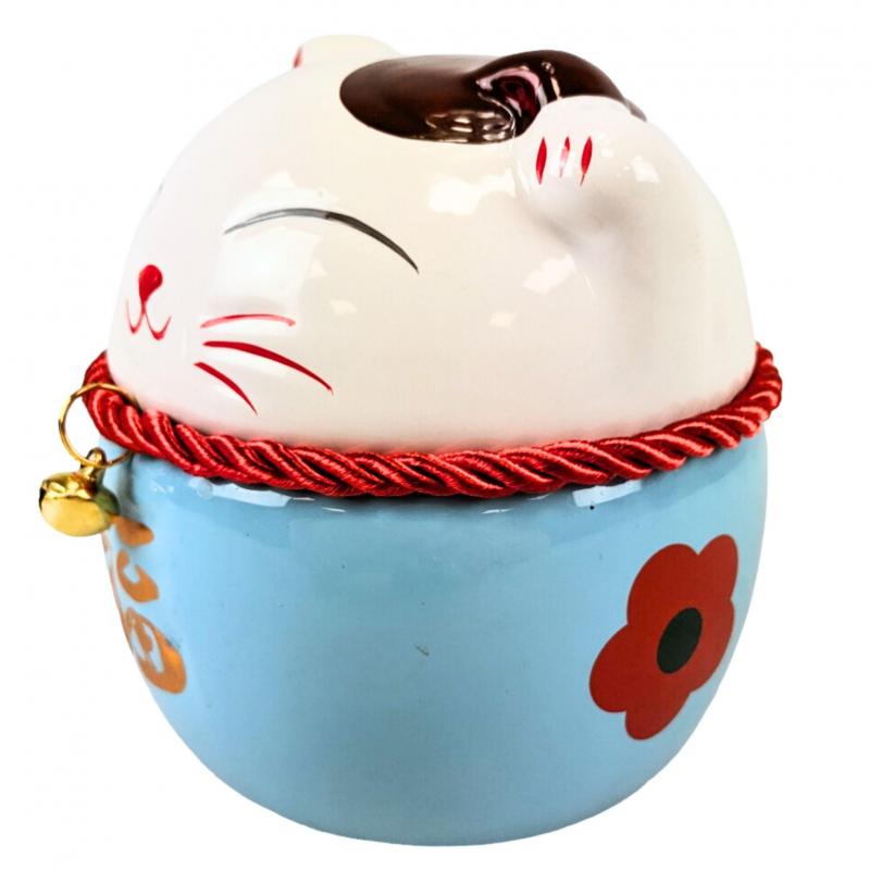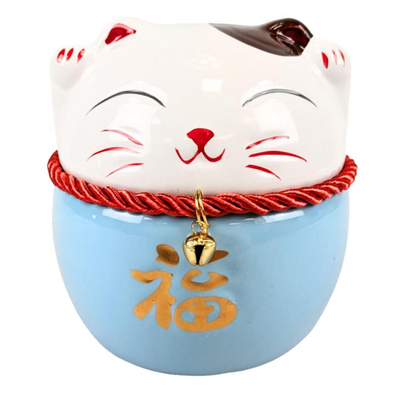 Tirelire Chat Maneki Neko en Porcelaine - Bleu et Blanc