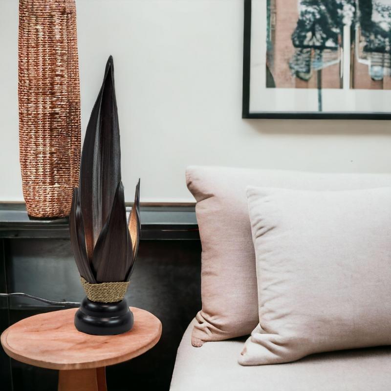 Grande Lampe de Salon en Feuilles de Cocotier et Acajou 75cm | à équiper