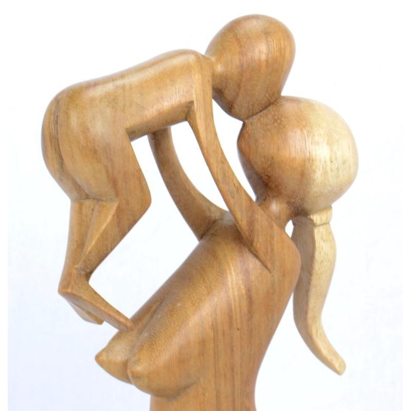 Statue abstraite Maman et Bébé 20cm en bois Brut