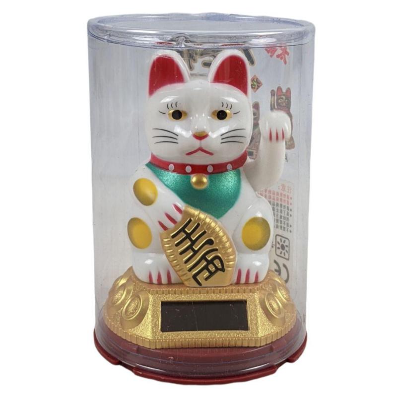 Maneki Neko Blanc / Chat japonais à énergie solaire 8cm