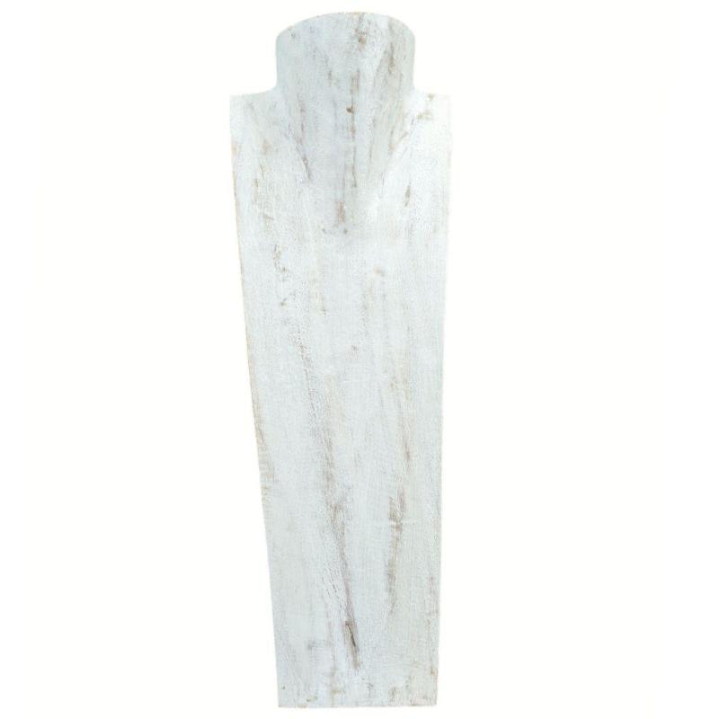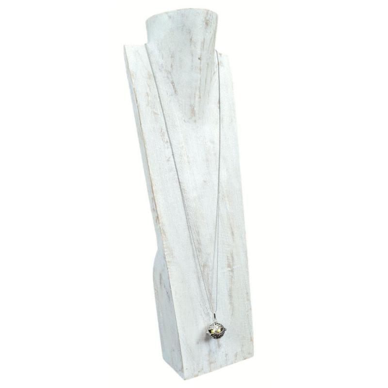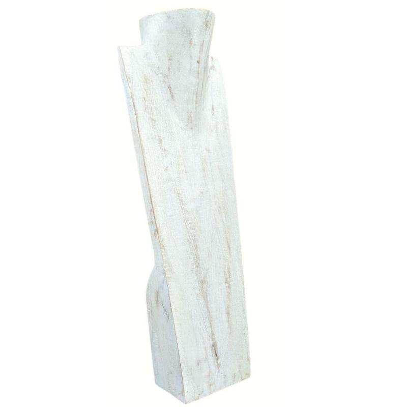 Grand Buste en bois Présentoir à colliers 50cm | Finition "Blanc Cérusé"