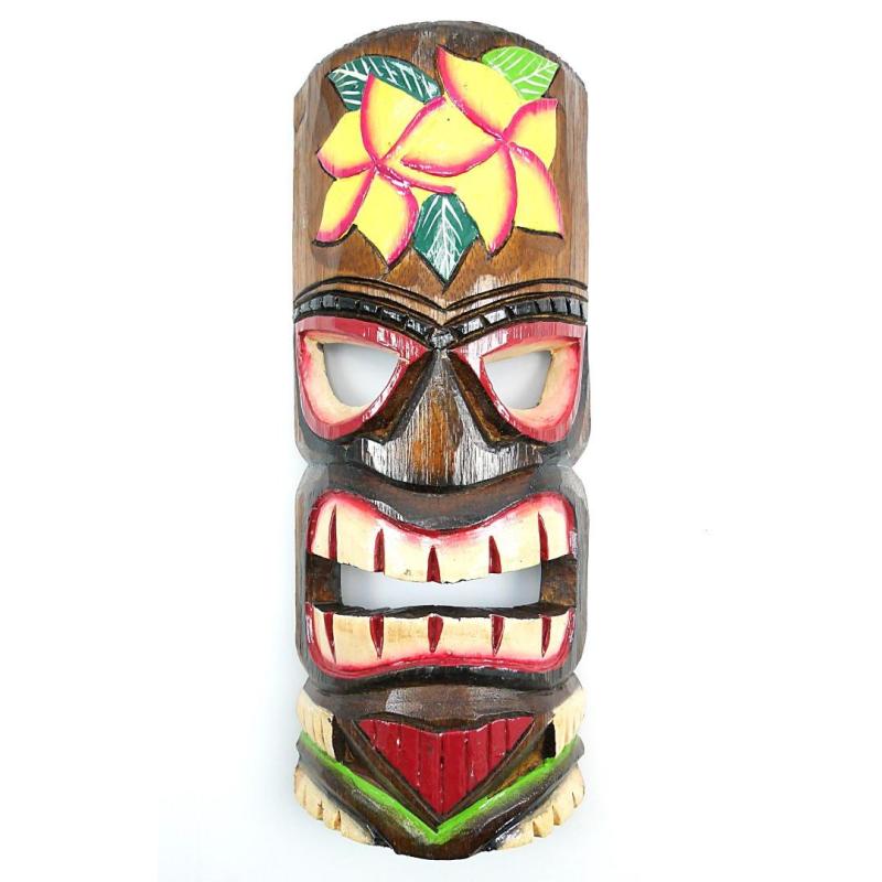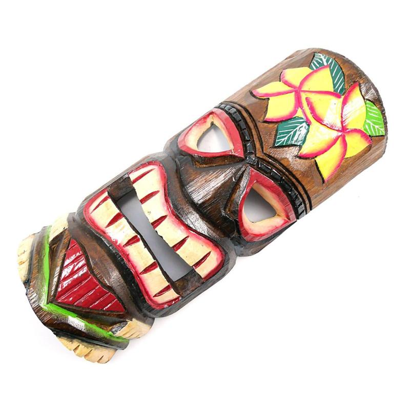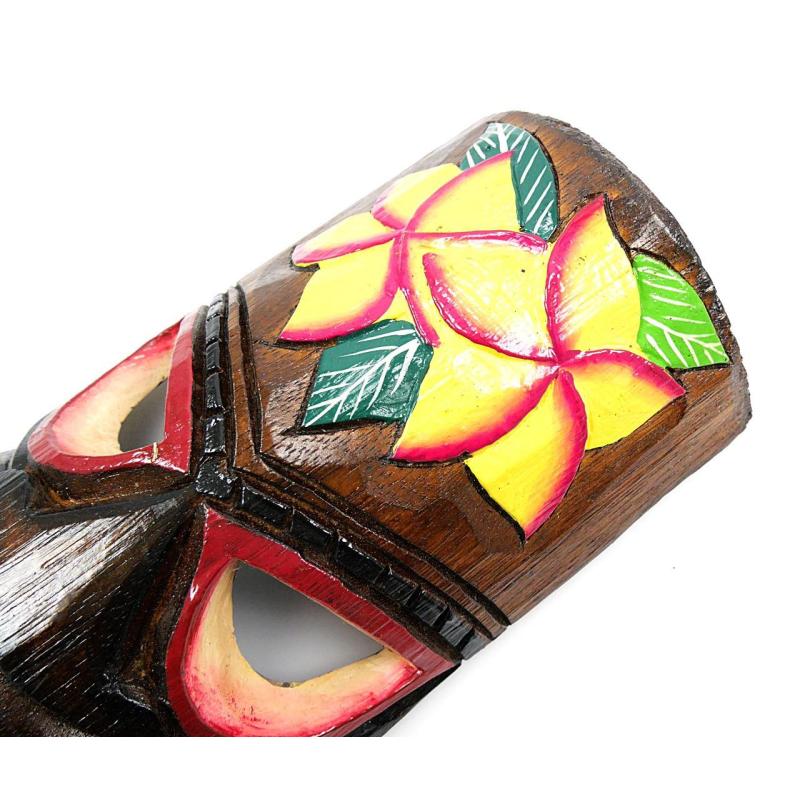 Masque Tiki 30cm en bois motif Fleur. Décoration Tahiti