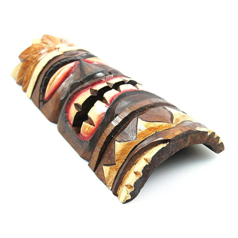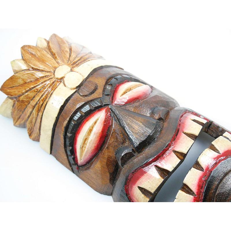 Masque Tiki 30cm en bois motif plumes. Déco tribale polynésienne.