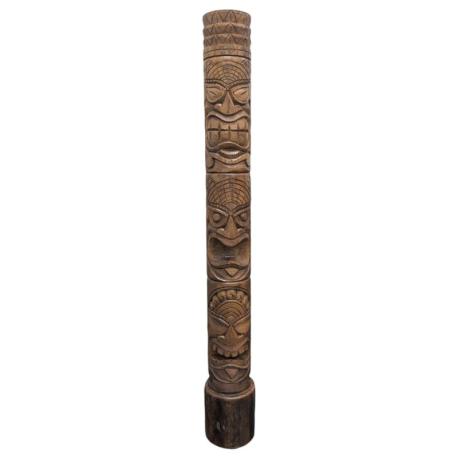 Cet impressionnant Totem Tiki de 1m50 de hauteur est une authentique sculpture sur bois artisanale. Il peut être exposé en intérieur comme en extérieur pour apporter une touche exotique et le style polynésien à votre déco.