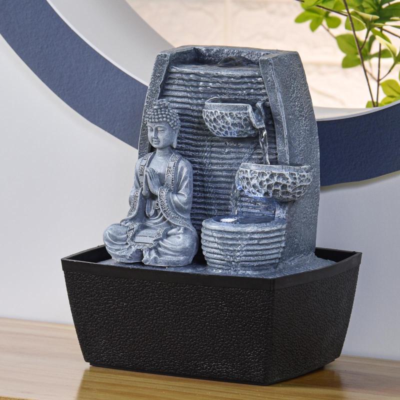 Fontaine d'intérieur Bouddha Stone avec mur d'eau et éclairage Led