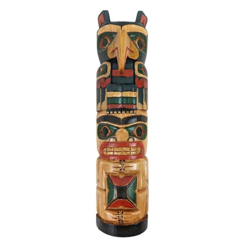 Totem Indien mural 50cm en bois sculpté et peint à la main