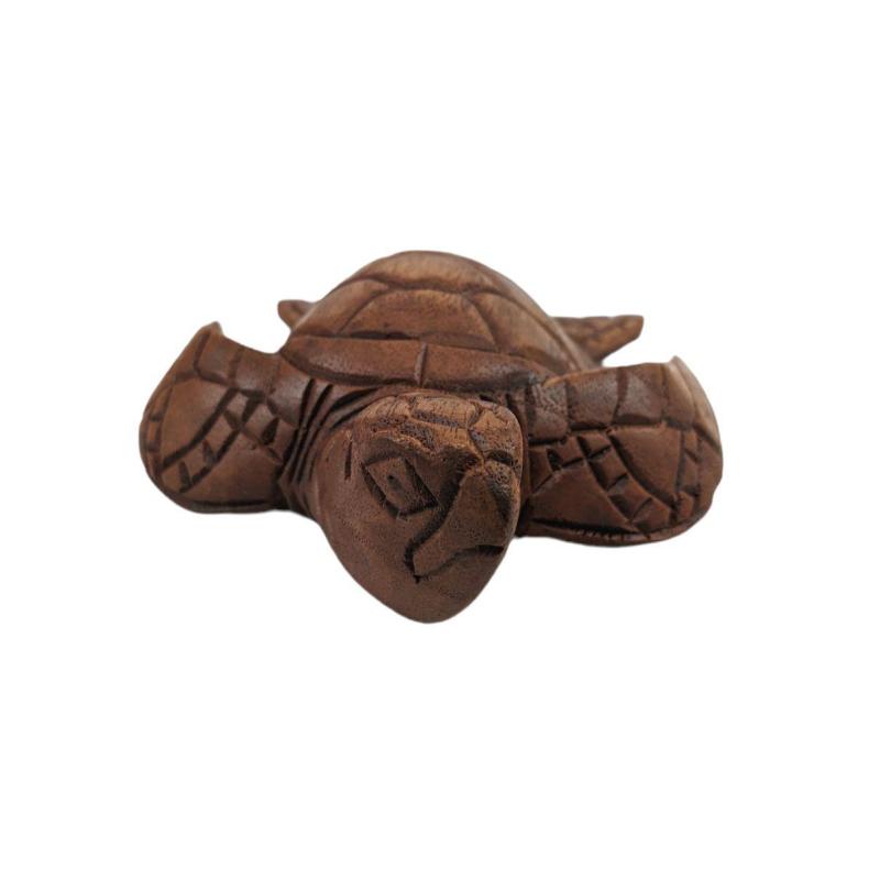 Statuette Tortue marine 15cm en bois massif sculpté main