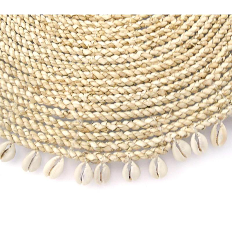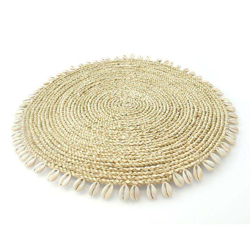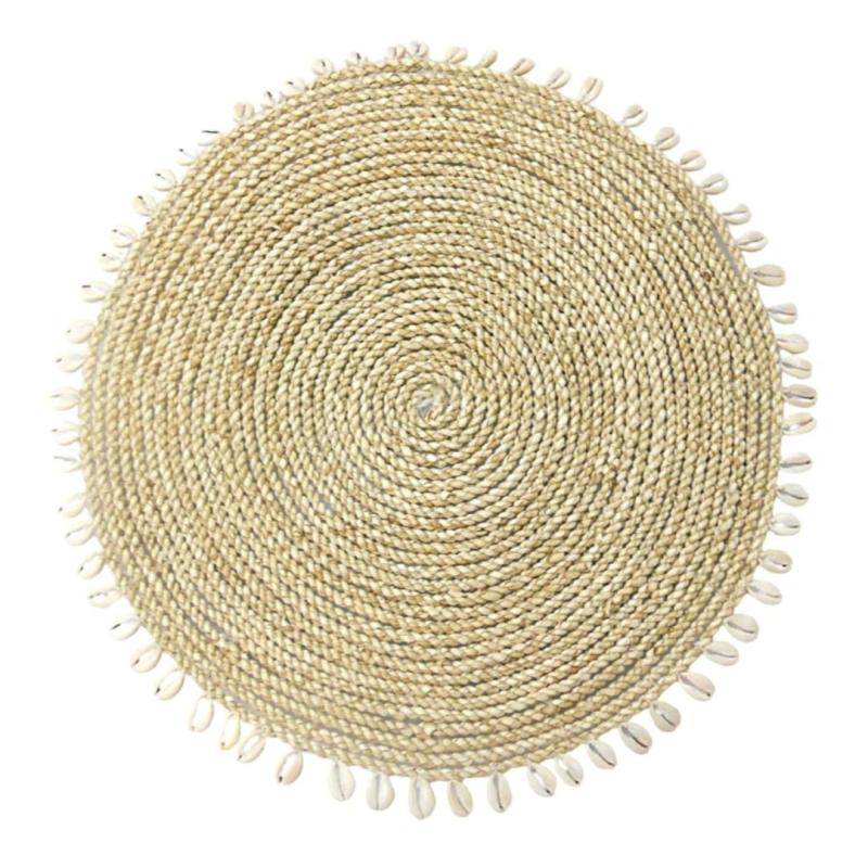 Set de table rond ø35cm en jonc de mer et coquillages, déco de table nature.