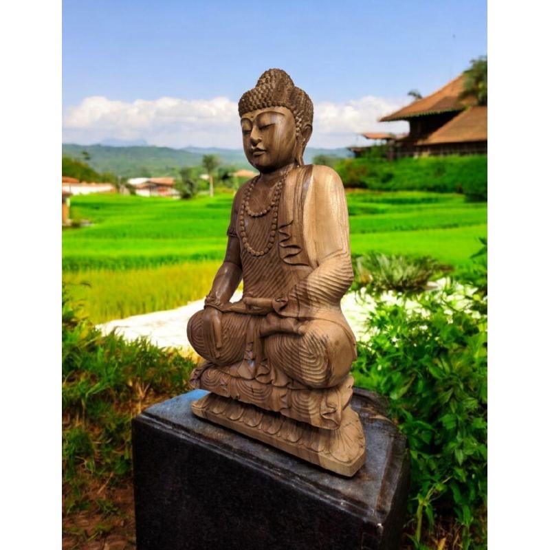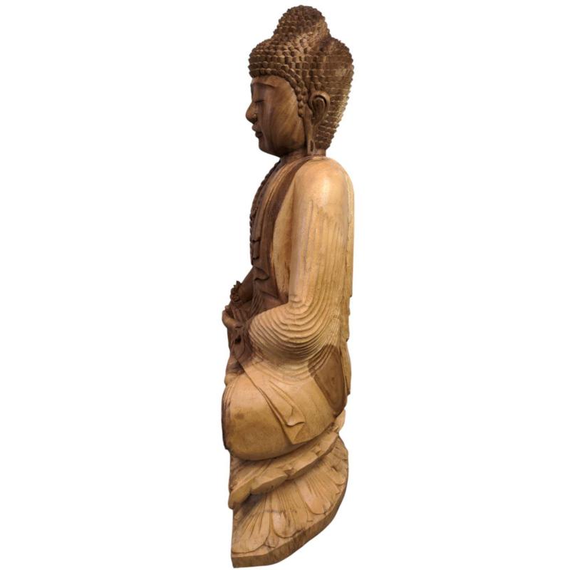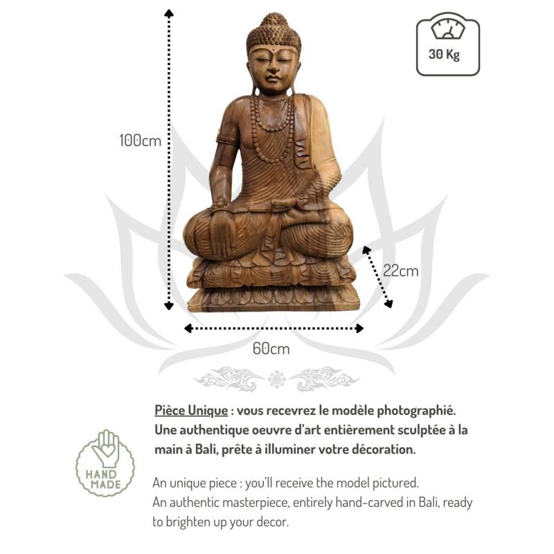 Sculpture "Bouddha Bumisparsha" en bois de Suar 100cm