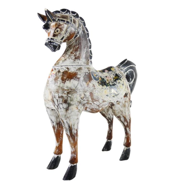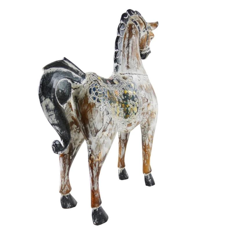 Cheval en Bois Sculpté et Peint à la Main 50cm | Déco Vintage
