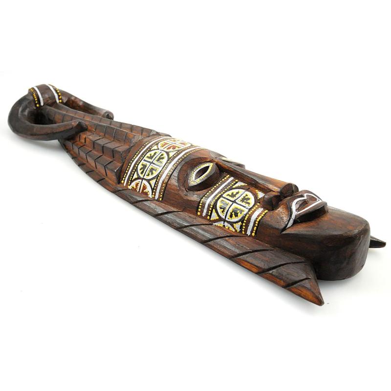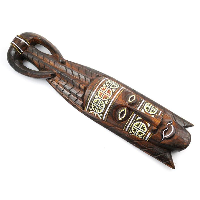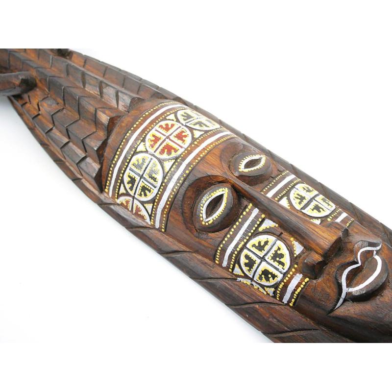 Masque Africain en bois 50cm motifs colorés. Déco murale ethnique.