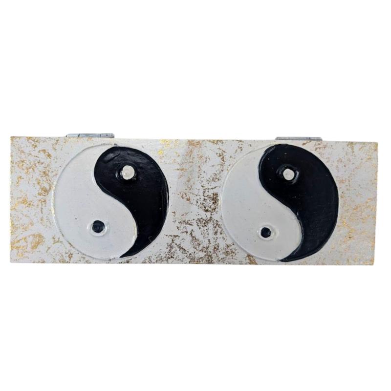 Boîte en bois motif Yin Yang peint à la main - Coloris Noir & Blanc