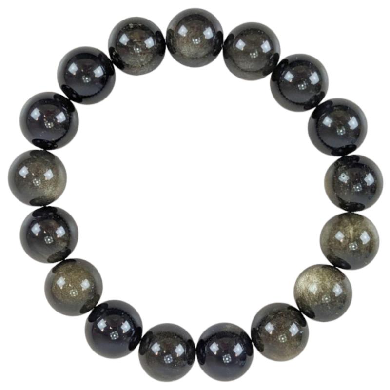 Bracelet en Obsidienne dorée AAA - boules 12mm