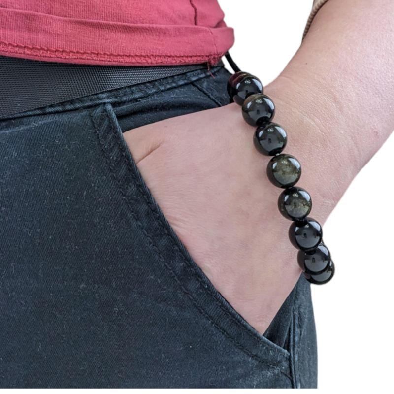 Ce magnifique bracelet en Obsidienne Dorée est un bijou rare et précieux qui vous aidera à trouver votre lumière intérieure. Il est composé de perles d'Obsidienne Dorée de 12mm de diamètre soigneusement sélectionnées pour leur éclat et leur beauté.