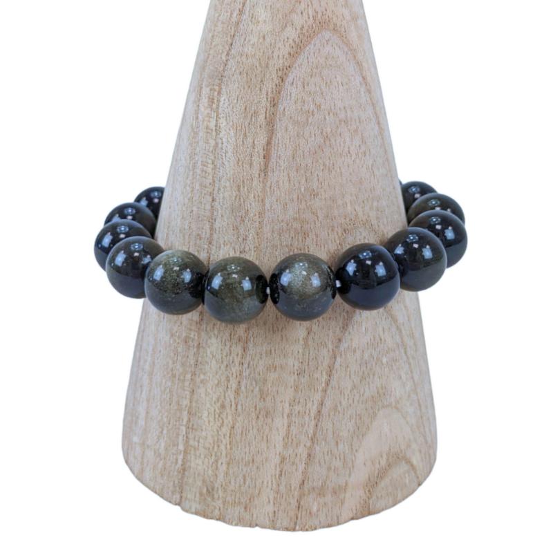 Bracelet élastique longueur 20,5cm (idéale pour les poignets de 18 à 21cm environ). Diamètre des perles 12mm. Perles en Obsidienne Dorée de grade AAA, origine Mexique.