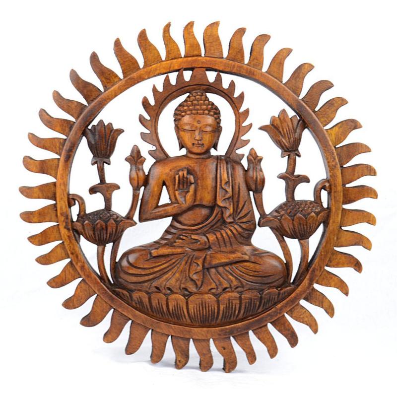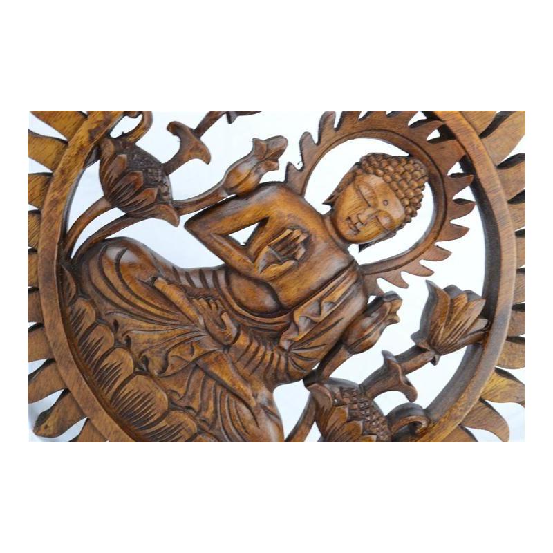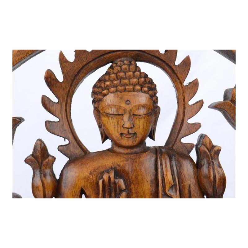 Décor mural Bouddha en bois massif sculpté main 30cm