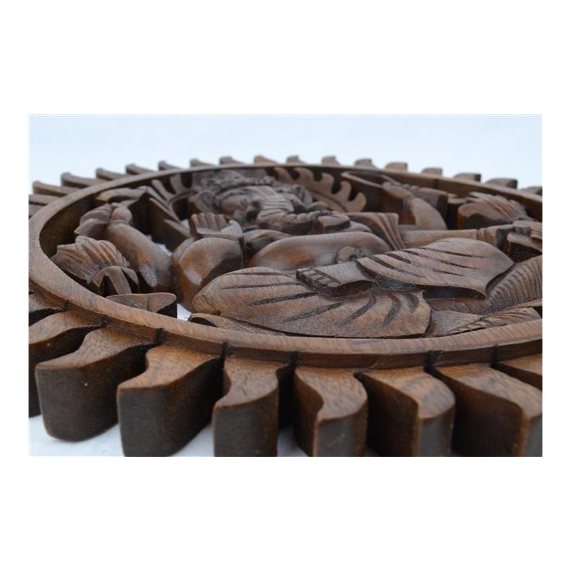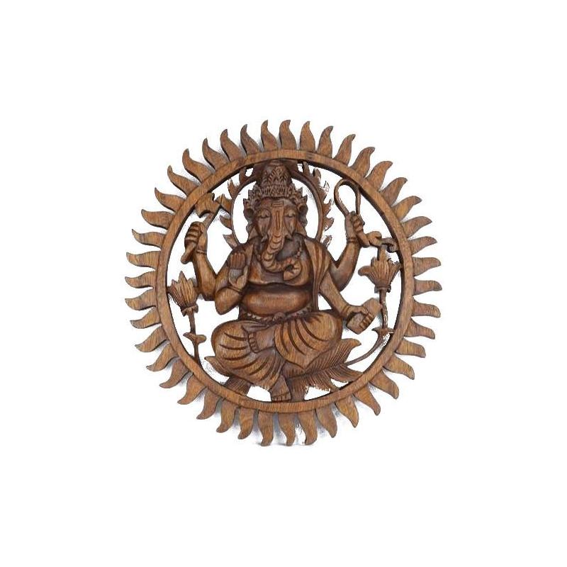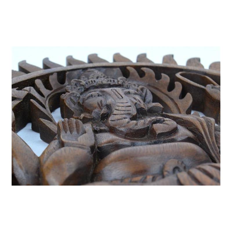 Décor mural Ganesh en bois massif sculpté main 30cm