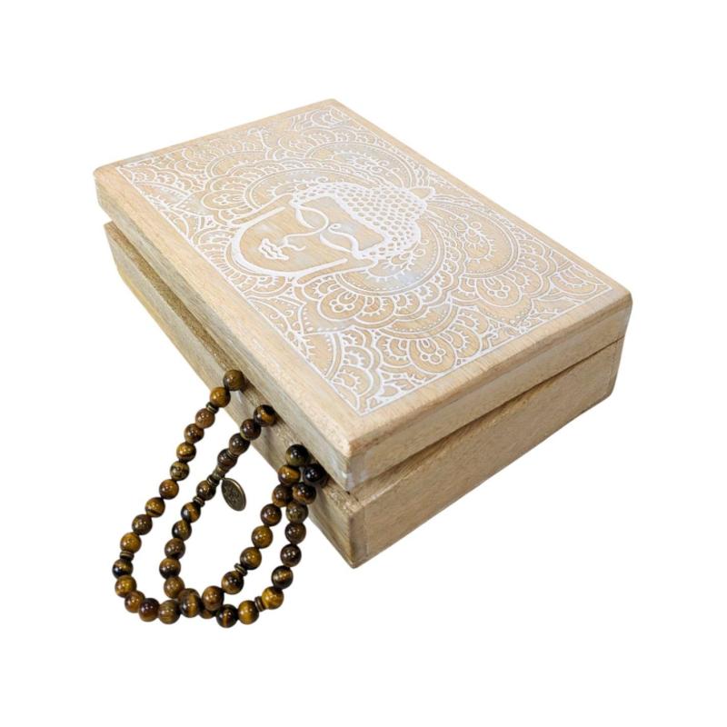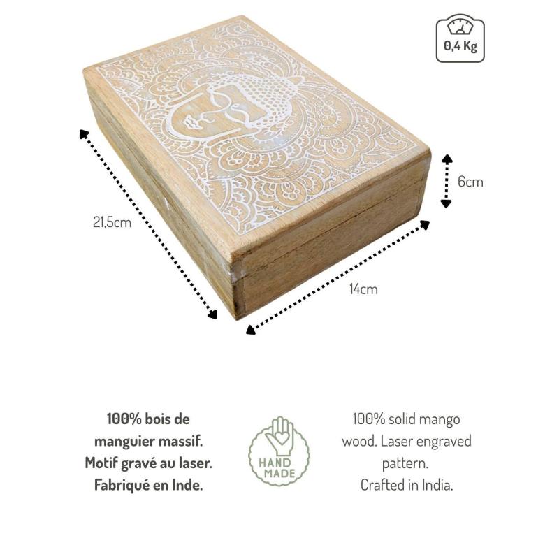 Boîte décorative en bois motif Bouddha & Mandala 21,5x14cm