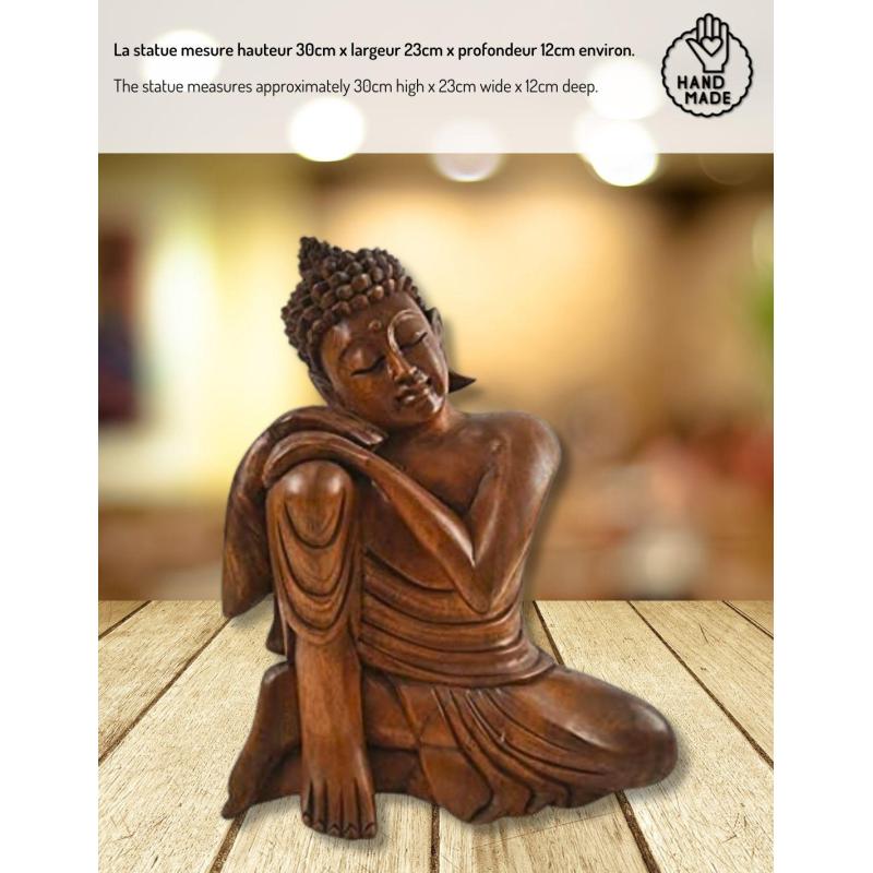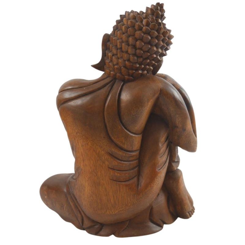 Statue de Bouddha Penseur 30cm - Bois massif sculpté main