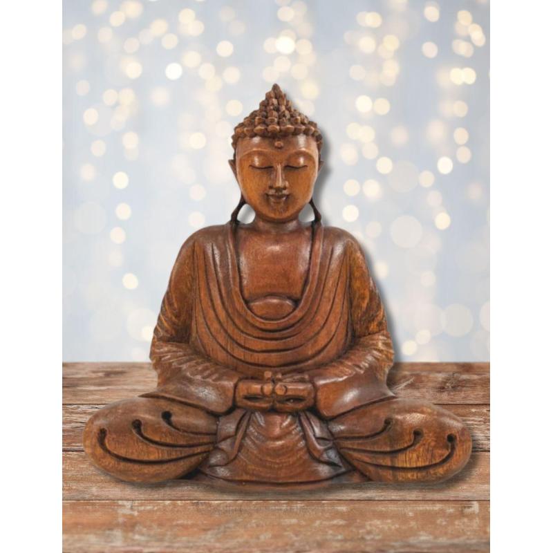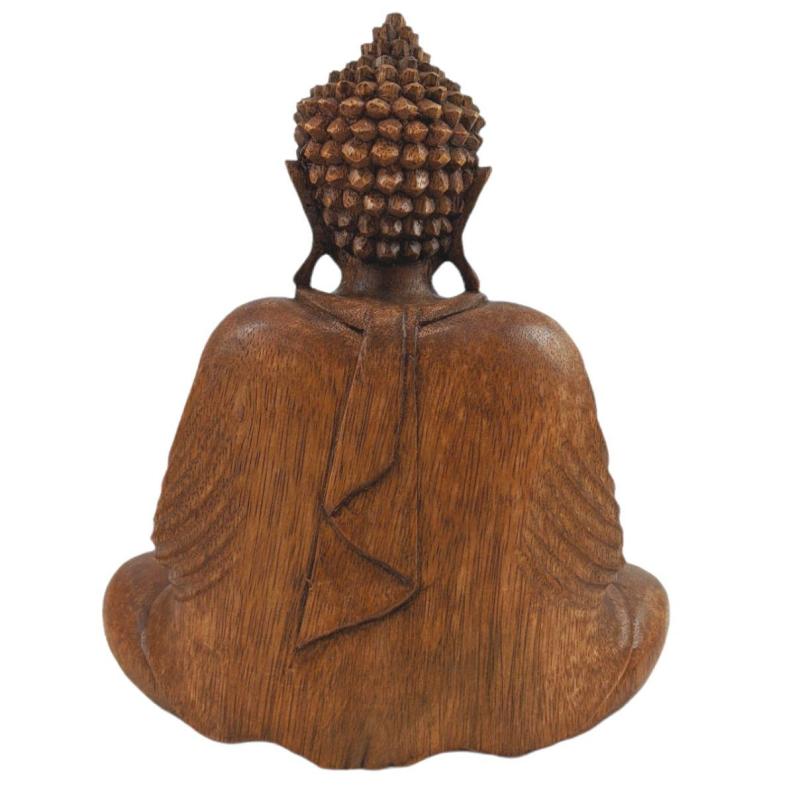 Statue Bouddha assis en position du Lotus - Bois massif sculpté Main 20cm