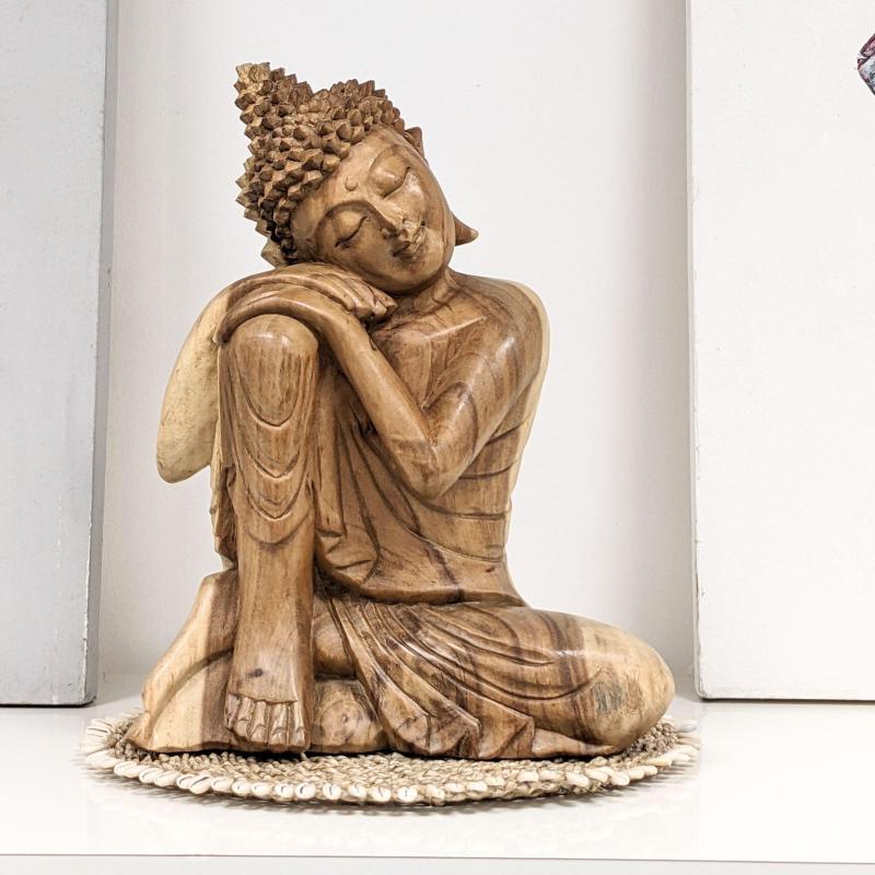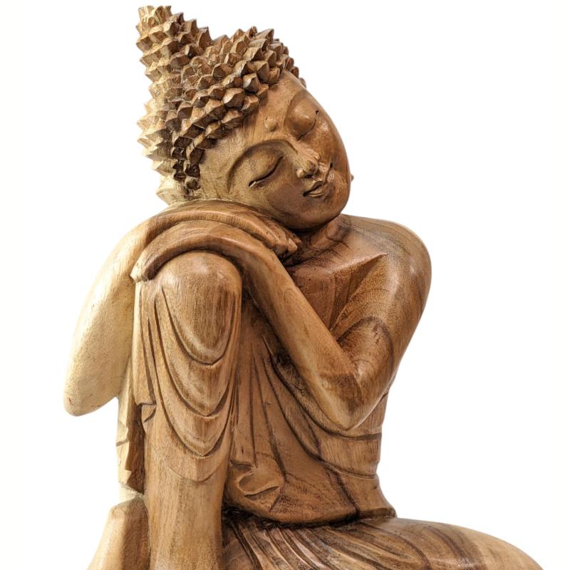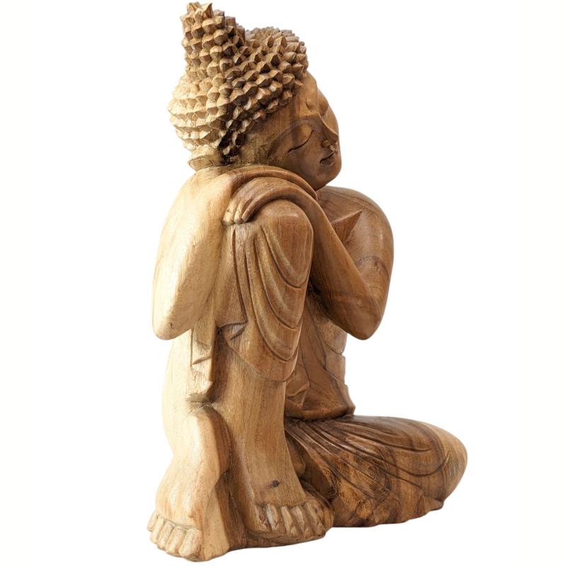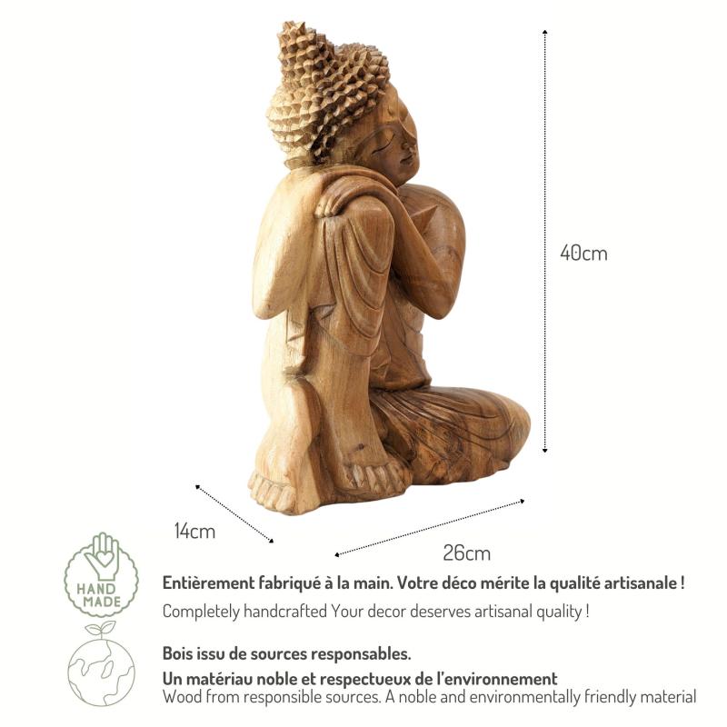 Statue de Bouddha assis 40cm - Bois massif brut sculpté main.