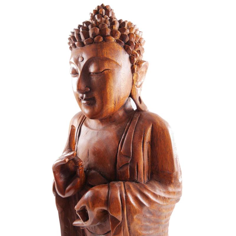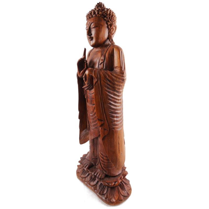 Grand Bouddha debout 60cm - Bois massif sculpté main