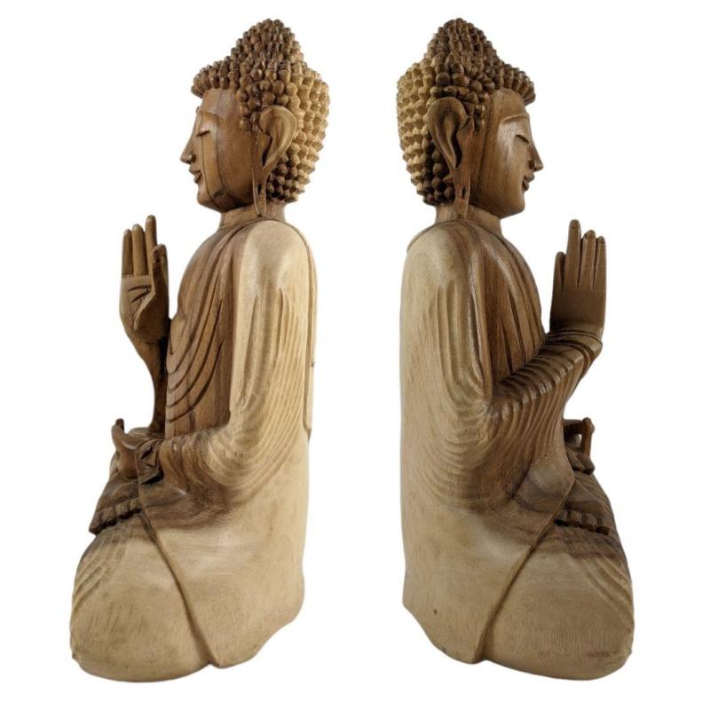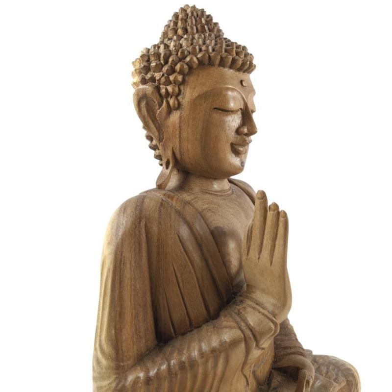 Statue Bouddha assis argumentation 40cm bois exotique brut