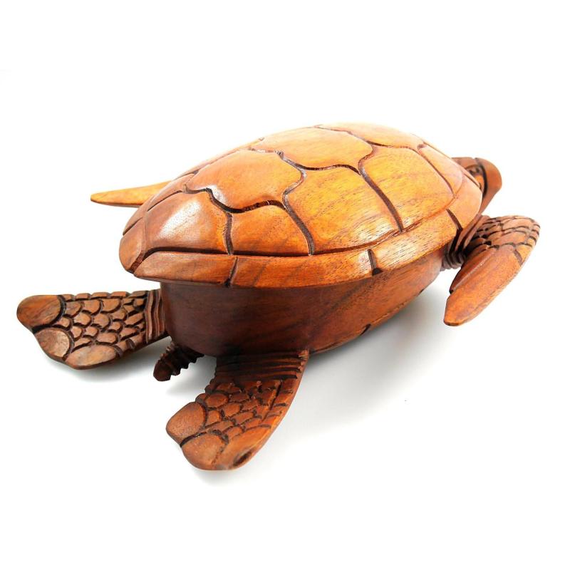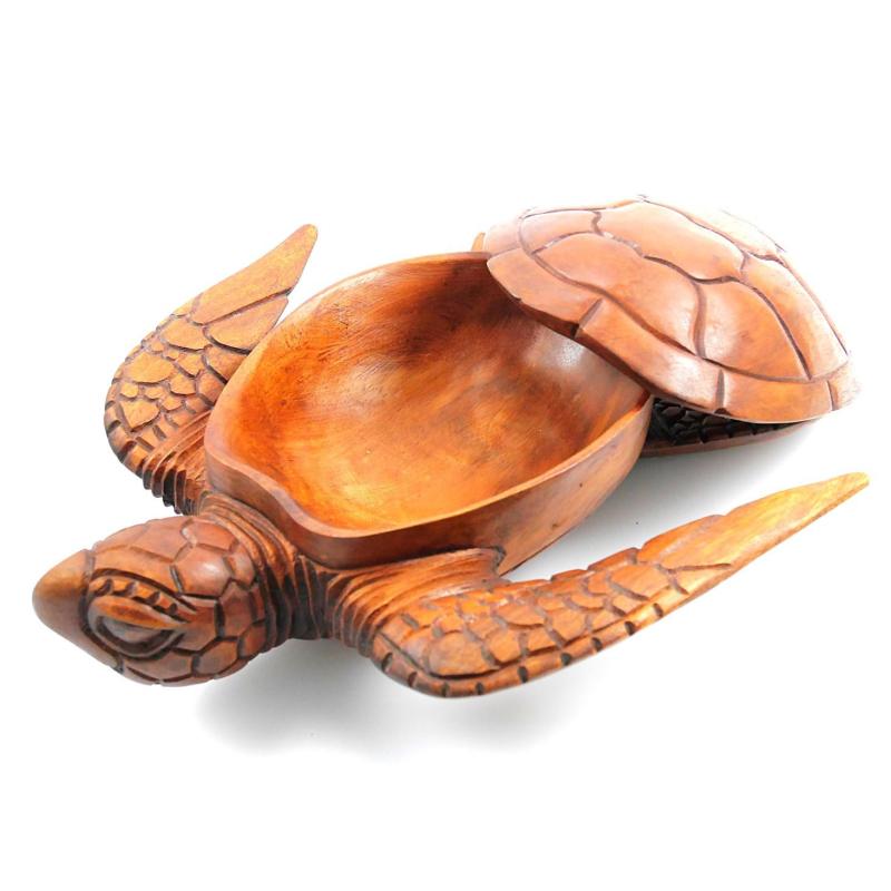 Grande boîte / vide-poche en bois exotique forme Tortue de mer