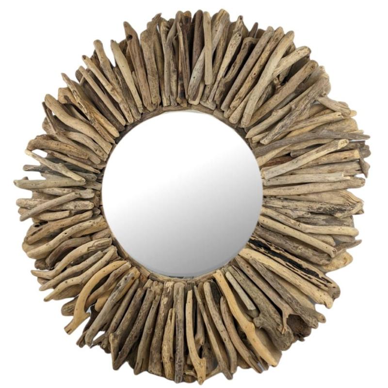 Grand Miroir mural Rond en Bois Flotté ø80cm