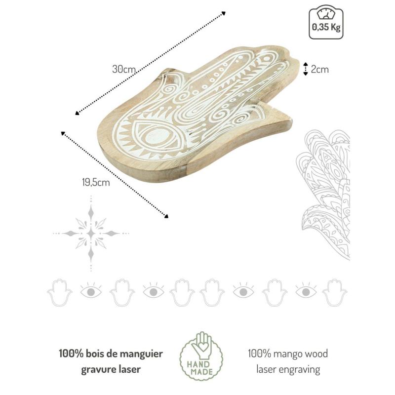 Plateau décoratif ou Vide-poche Main de Fatma en bois 30cm