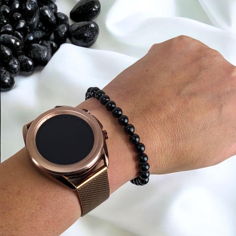 Longueur 18cm (idéale pour les poignets de 16 à 19,5cm environ). Diamètre des perles 6mm (30 perles environ). Bracelet élastique composé de perles en Tourmaline noire naturelle de qualité AAA, origine Brésil.