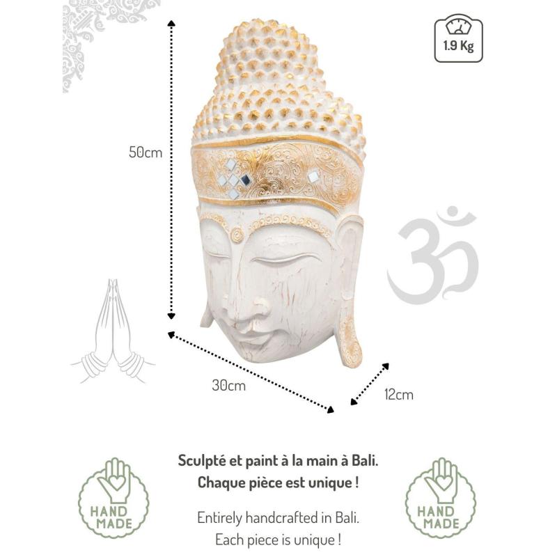 Tête de Bouddha murale 50cm en bois | Déco Spirituelle