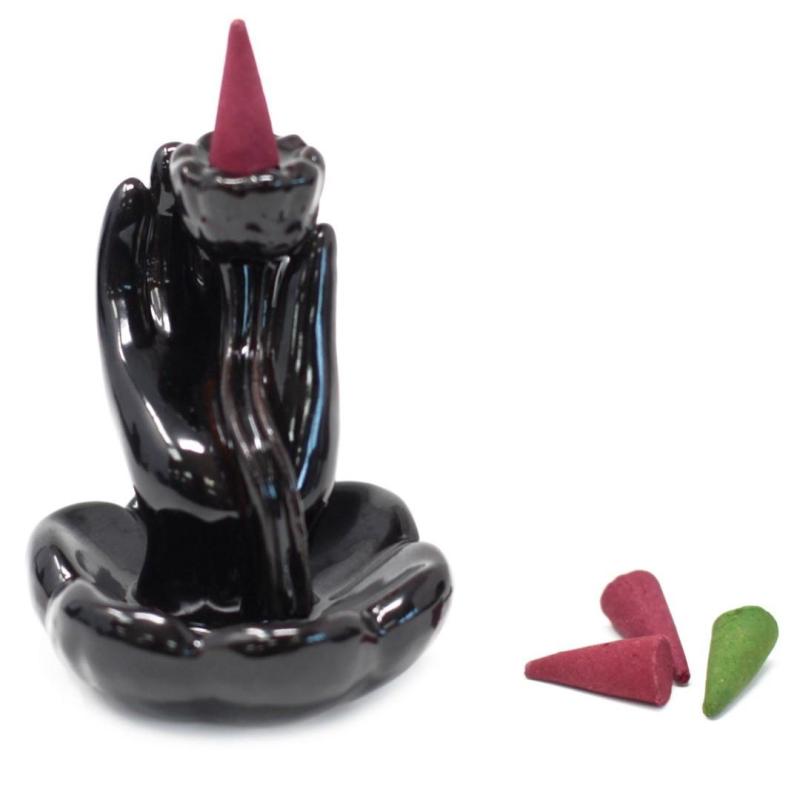 Attention : afin d'obtenir l'effet "cascade de fumée" avec votre fontaine à encens, il est nécessaire d'utiliser des cônes d'encens spécialement conçus à cet effet. Ces cônes sont dits à reflux, à refoulement, ou encore "Backflow".