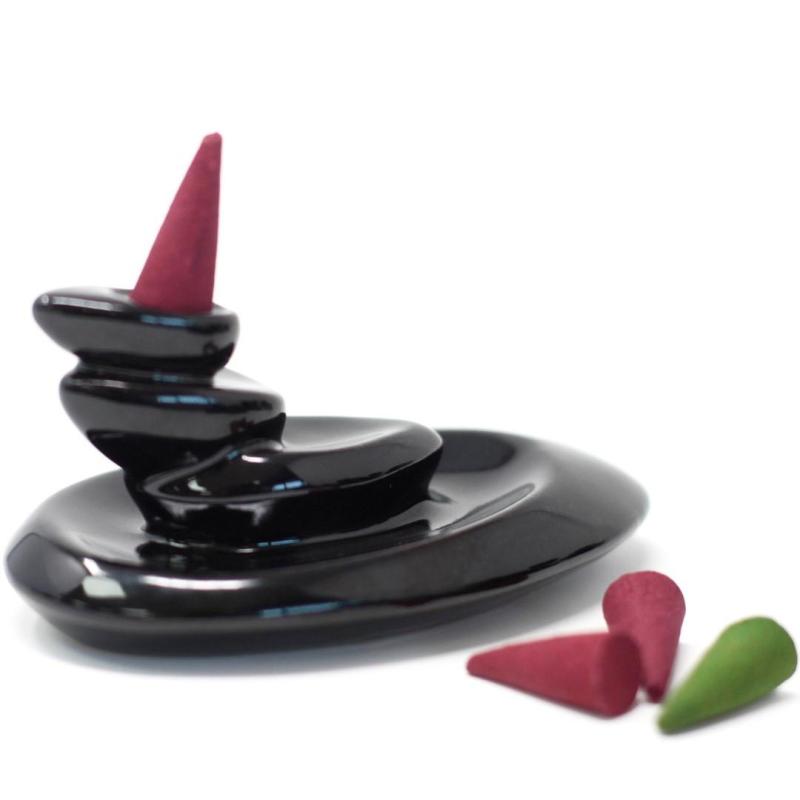 Fontaine à encens en céramique noire - Décor petits galets