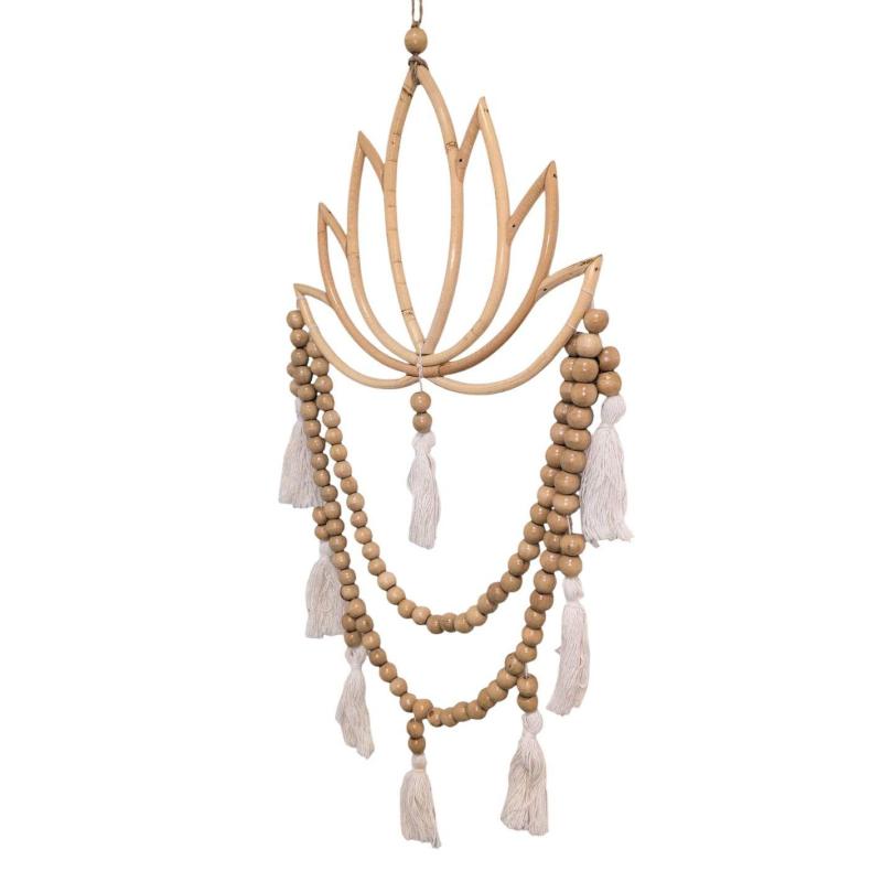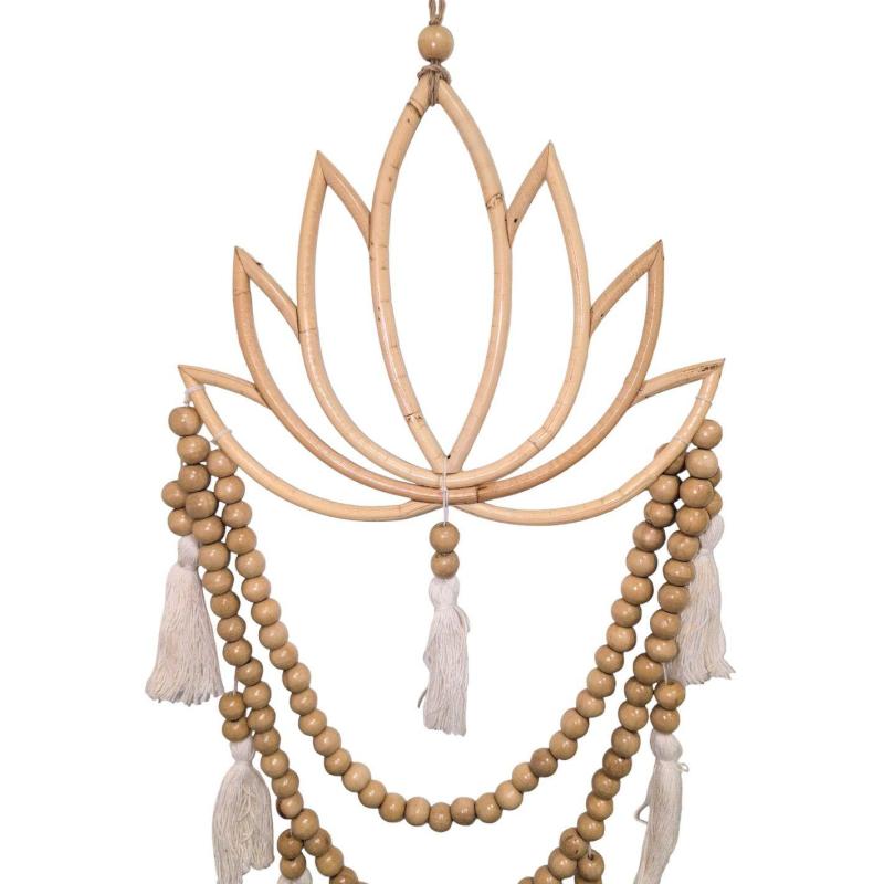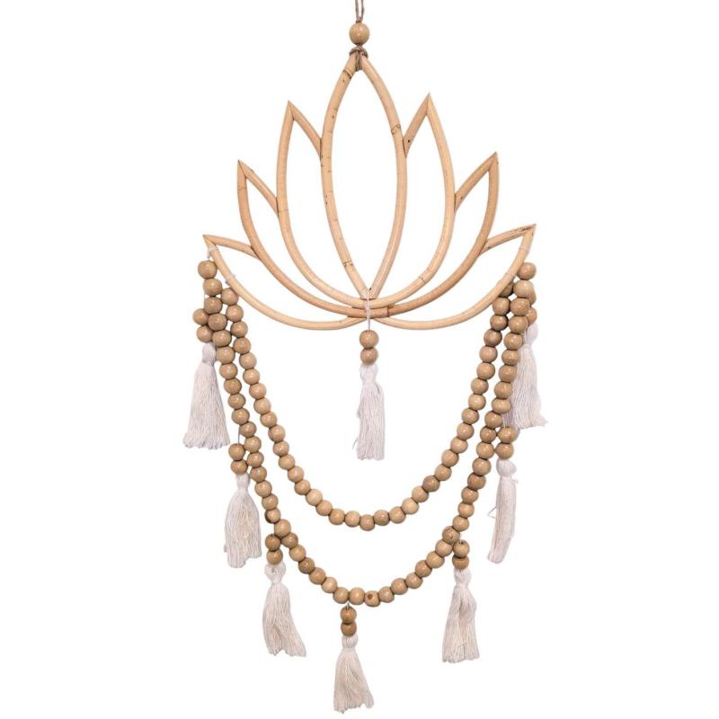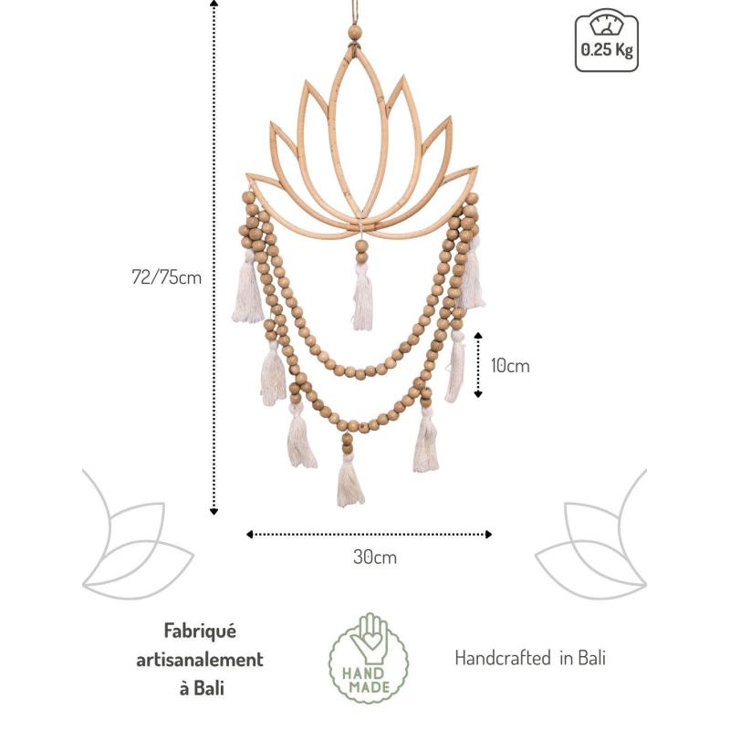 Suspension murale "Lotus" 75cm en bois & rotin | Esprit Bohème Chic
