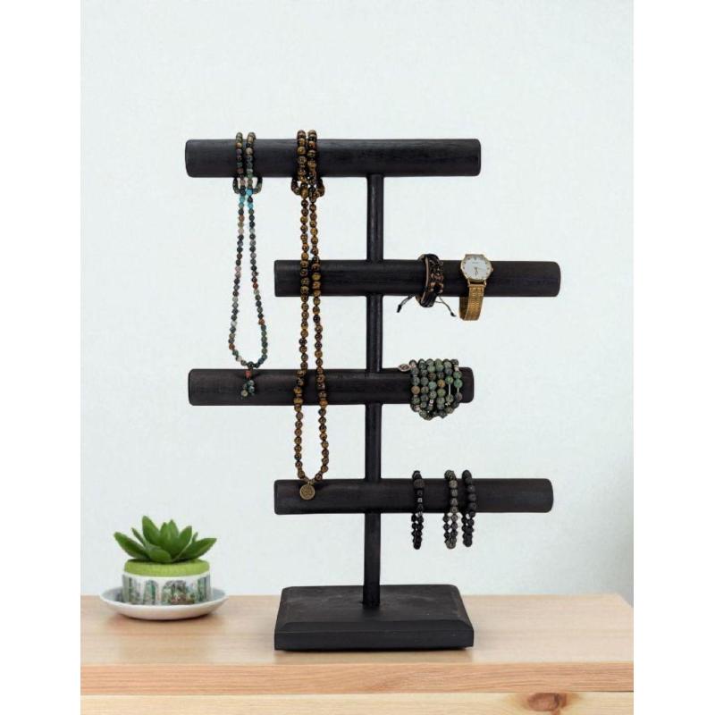 Présentoir à bijoux 4 niveaux 48cm en bois noir