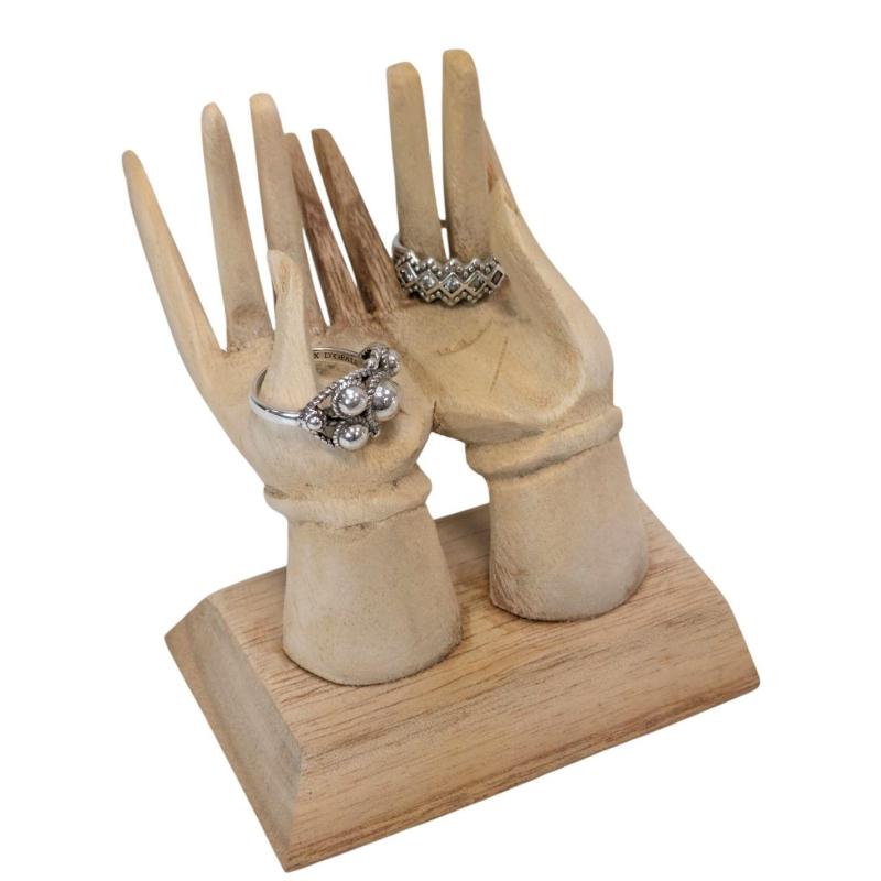 Mains porte-bagues / Présentoir à cartes de visite en Bois massif brut