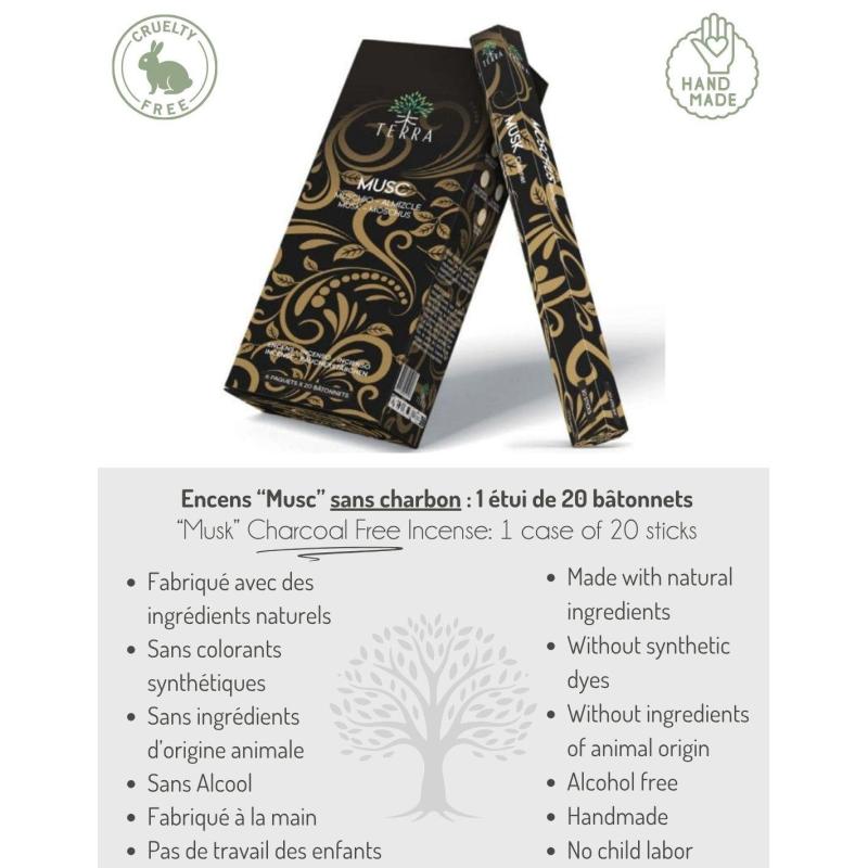 Encens sans charbon "Musc" 20 bâtons | Terra