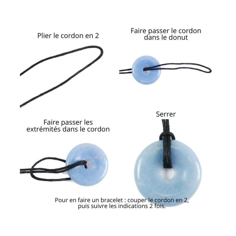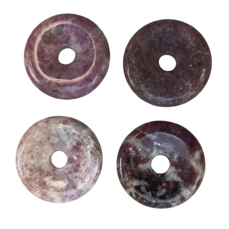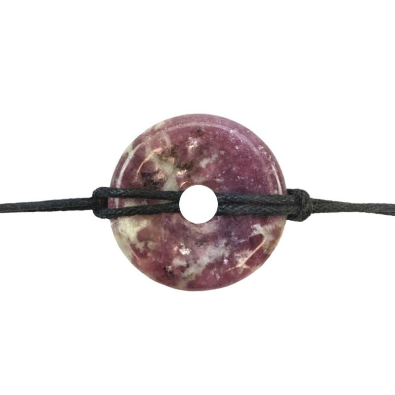 Donut ou Pi Chinois en Lépidolite 30mm + cordon - Pendentif ou bracelet