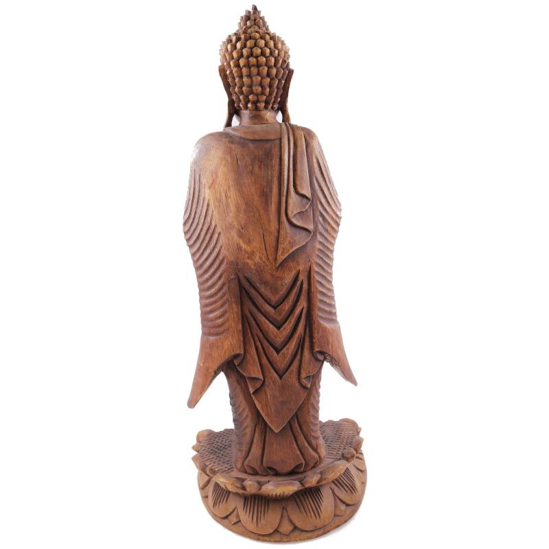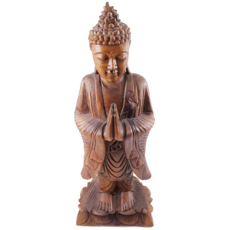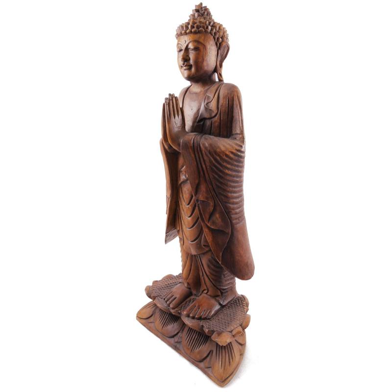 Grande statue de Bouddha Mudra Anjali debout 60cm bois massif sculpté main